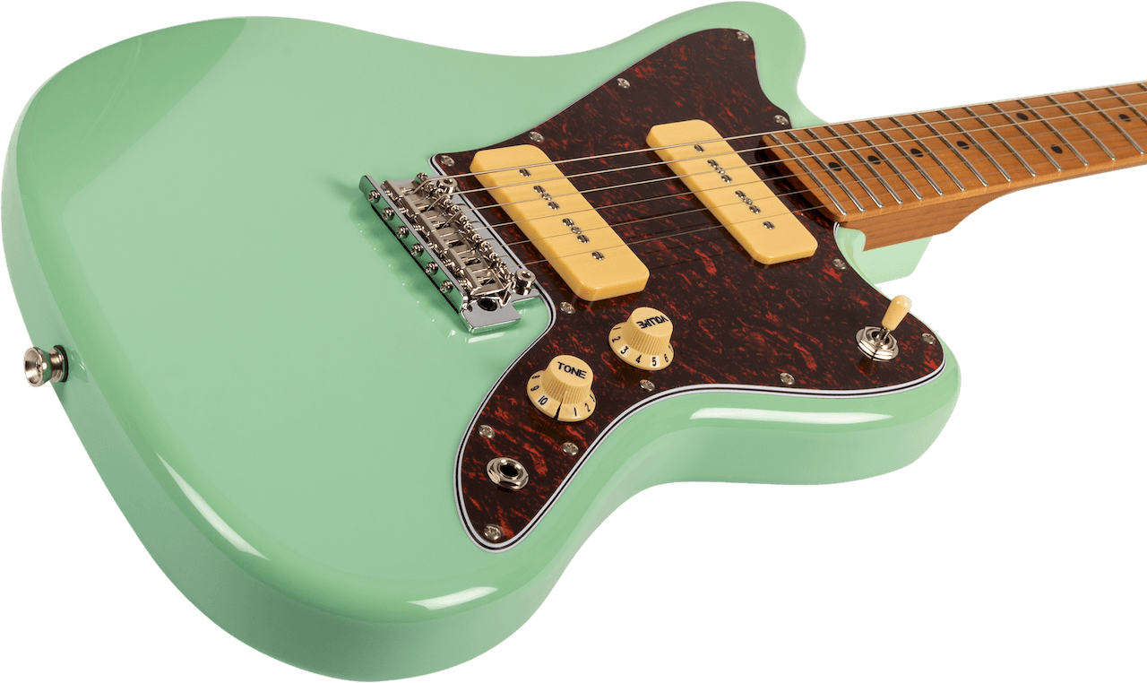 Color: Sea GreenJet Guitars JJ 300 P90 Sea Foam GreenMachine HeadChrome