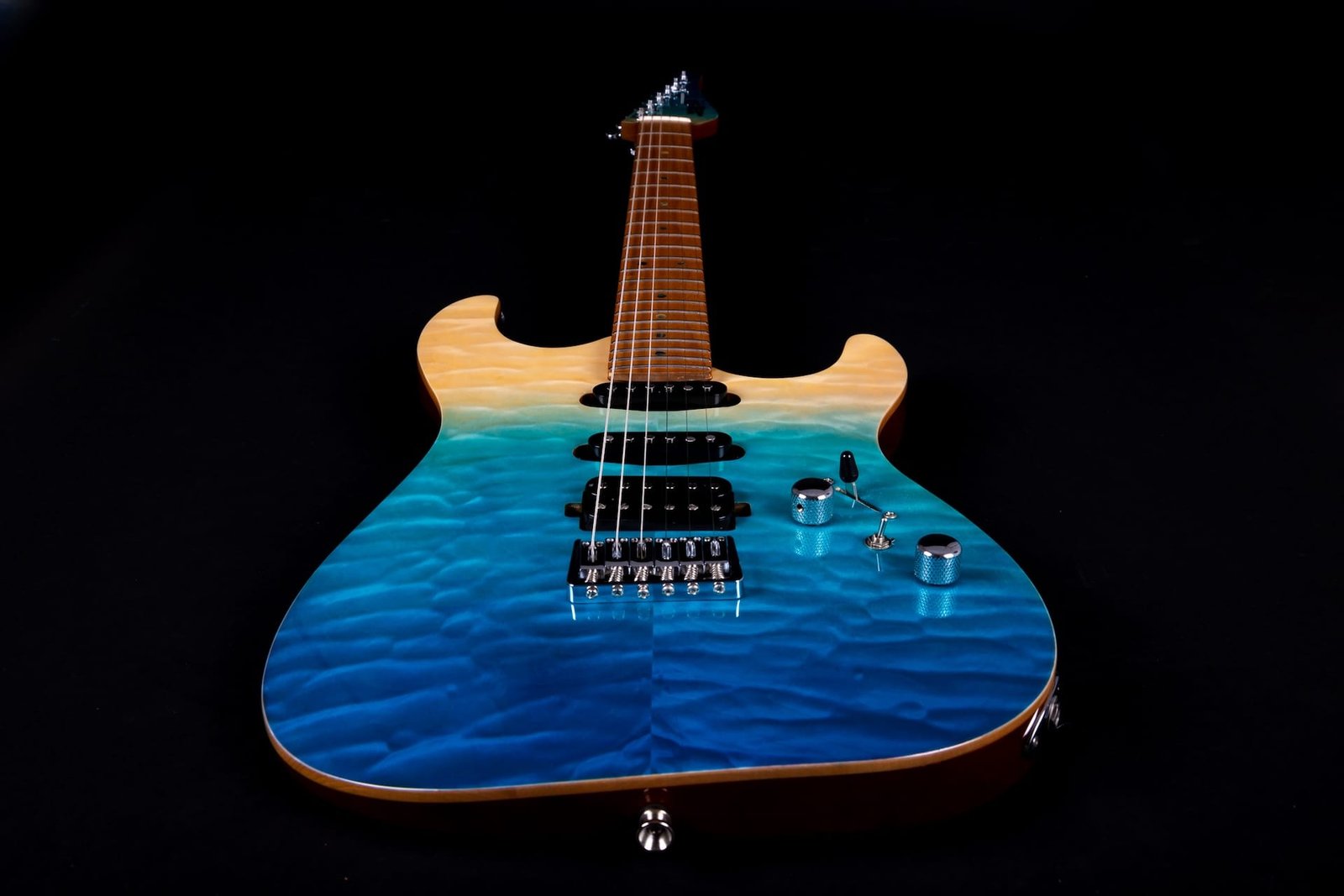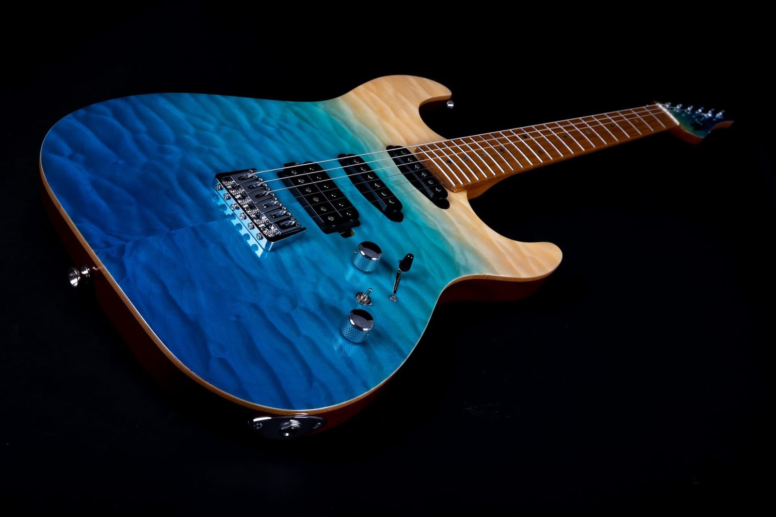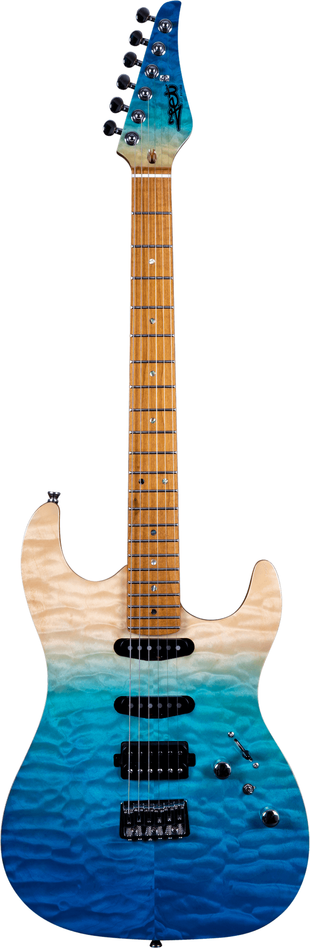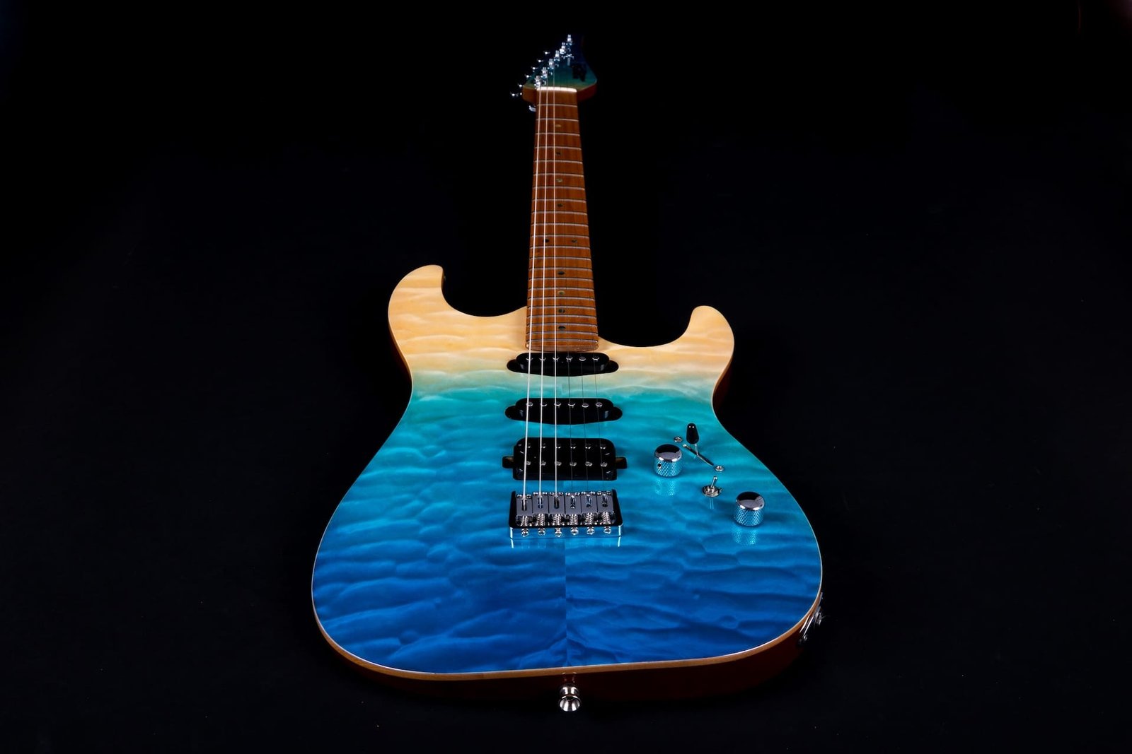 HSS Mahogany body with quilted top, roasted maple fretboard & neck