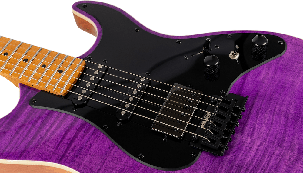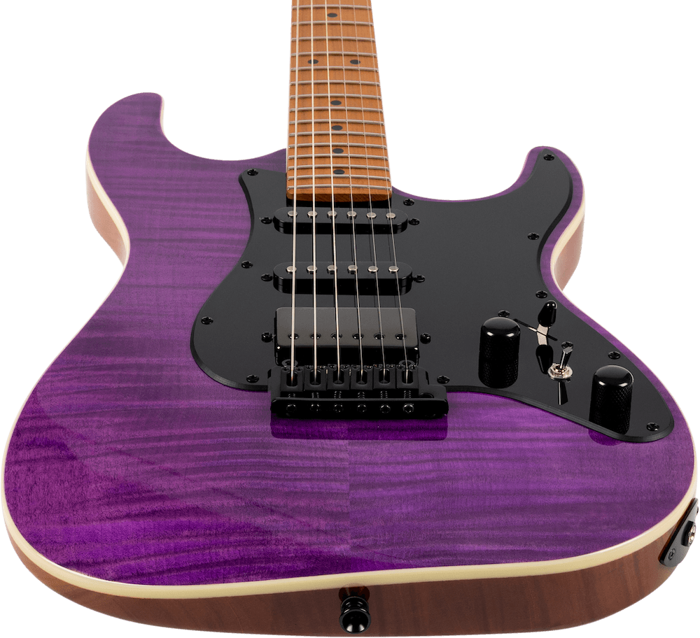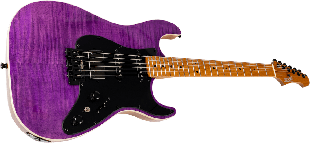 HSS  Mahogany body with flamed top, mixed ebony fretboard & maple neck