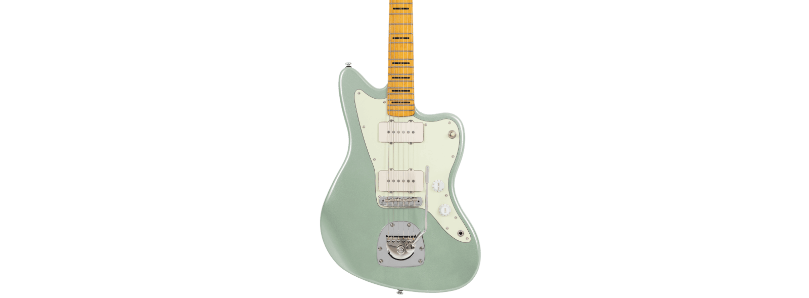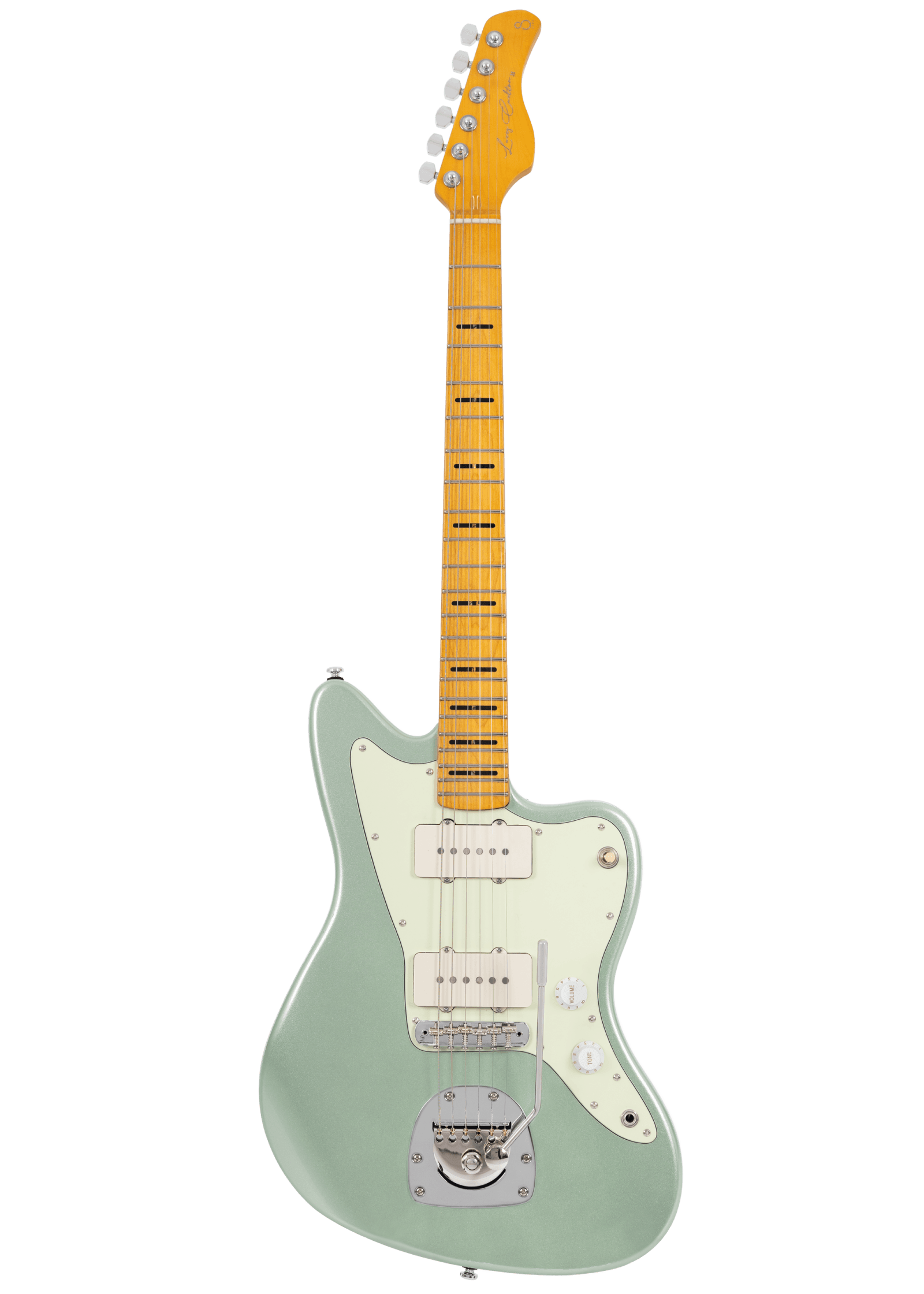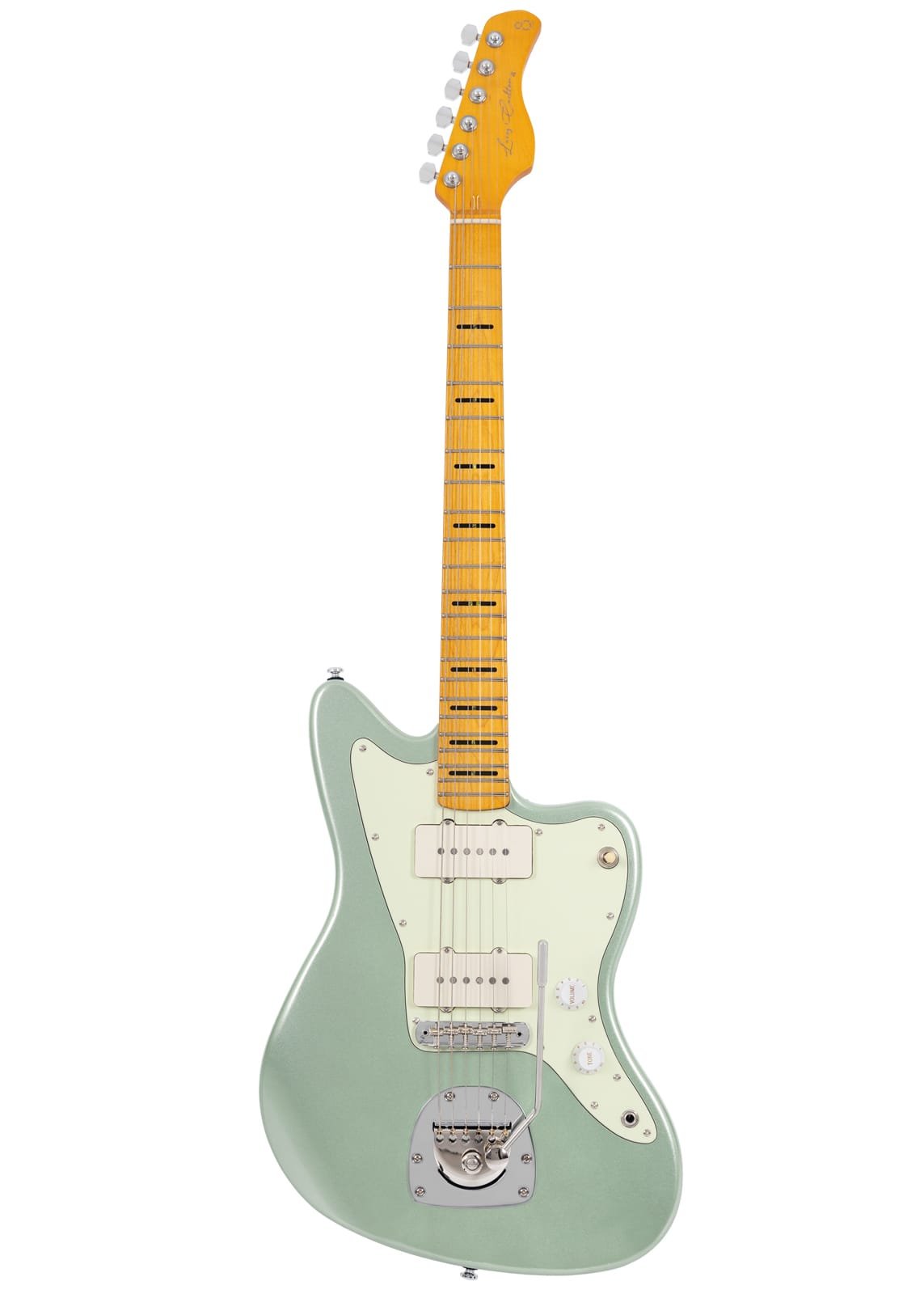 Une version supérieure de la J3 équipée d’un nouveau jeu de micros LC vintage et d’un autre pont trémolo vintage de marque. Cette combinaison permet d’obtenir un look vintage, ainsi qu’un profil sonore bien ciblé, solide et clair. Ce type de guitare a d’abord été introduit pour les joueurs de jazz, mais a ensuite été apprécié et utilisé par les joueurs de rock et de musique alternative dans les années 60. Corps en Aulne, Forme du corps: Sire JM SHAPE, Table massive en Cedre, Manche en Erable, Forme en C, Diapason 25.5‘’, Touche Ebène Edgeless, Radius 9.5’’, Frettes : 2.7 mm Médium Jumbo, 22 Frettes, Sillet os 42mm, Manche vissé, Micros :LC Vintage Jazzmaster Set Bridge : Goldo/Sire JM Type Bridge& DG Tremolo Control : 3 Way Toggle Switch, Volume,Tonalité; Boutons : White Strato Knob, Mécaniques : Sire Premium Locking Tuner, Finition : Sherwood Green Metallic