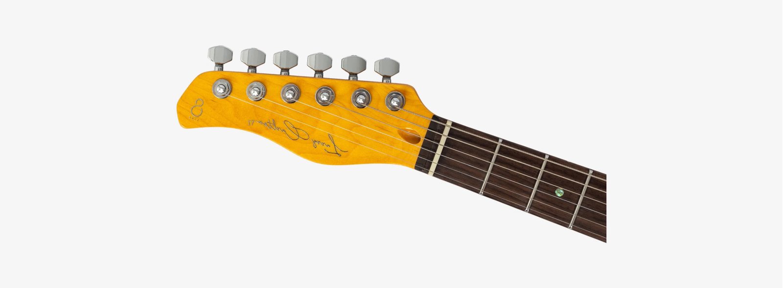 La T7 New Gen est une guitare électrique de style Larry Carlton T réimaginée, qui est maintenant chargée de caractéristiques significatives pour assurer des performances supérieures et prolonger sa durée de vie. Ses composants améliorés, notamment le nouveau micro Sire Larry Carlton pour une polyvalence tonale raffinée, des frettes en acier inoxydable, des caractéristiques supplémentaires pour le manche et de nouvelles couleurs rendent l’expérience de jeu encore plus exceptionnelle cette fois-ci. Corps en Aulne d’Amérique du Nord, Forme du corps : Sire T-Style, Manche en érable, Forme en C, Diapason : 25.5″, Touche : palissandre, Radius : 9.5~14″ Radius compensé, Frettes: 2.7mm Medium Jumbo en acier inoxydable, 22 frettes, Sillet : Graphtech Tusq XL 42mm, Incrustation: point, Jonction du manche : Plaque en acier à quatre vis, Micros: Set de micros LC Super-T, Controles: Selecteur 3 positions Volume/Tonalité, Boutons : Boutons chromé, Chevallet: Chevalet Vintage T avec pontets en Laiton, Mécaniques: Mécaniques à blocage Sire premium, Hardware Finish: Chrome, Pickguard: gold Aluminium, Finition : Dark Navy, version gauchère