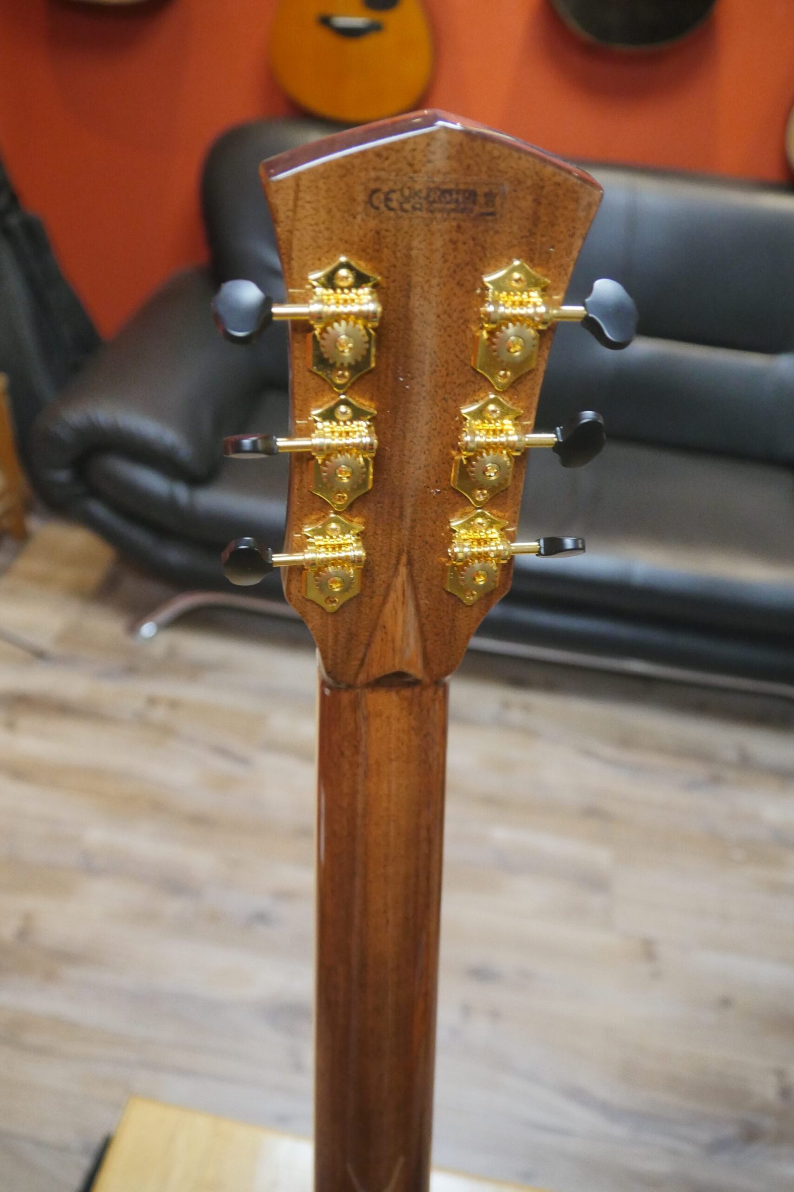 Cette nouvelle série GOLD a été conçue avec une seule chose à l’esprit: le son. Et vous allez l’entendre dès le premier accord ! Grâce au nouveau procédé de torréfaction ATV (Aged To Vintage) appliqué à la table, à la finition UV permettant d’obtenir une couche de vernis plus fine, au manche renforcé par deux inserts en palissandre, ou bien encore à la qualité supérieure de fabrication jusque dans les moindres détails, la série GOLD est déjà un must en matière de son et d’élégance !