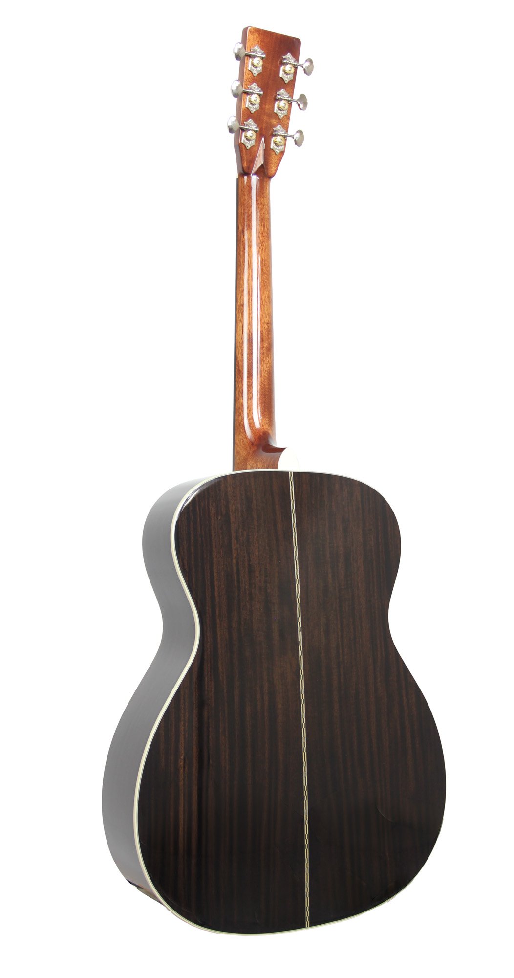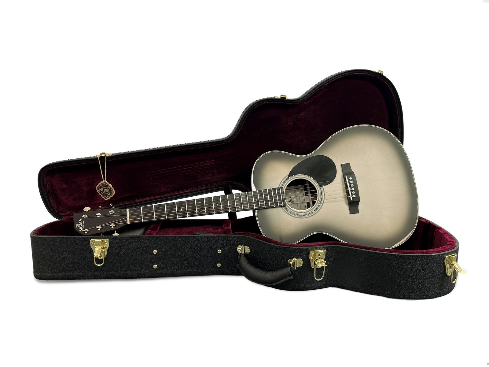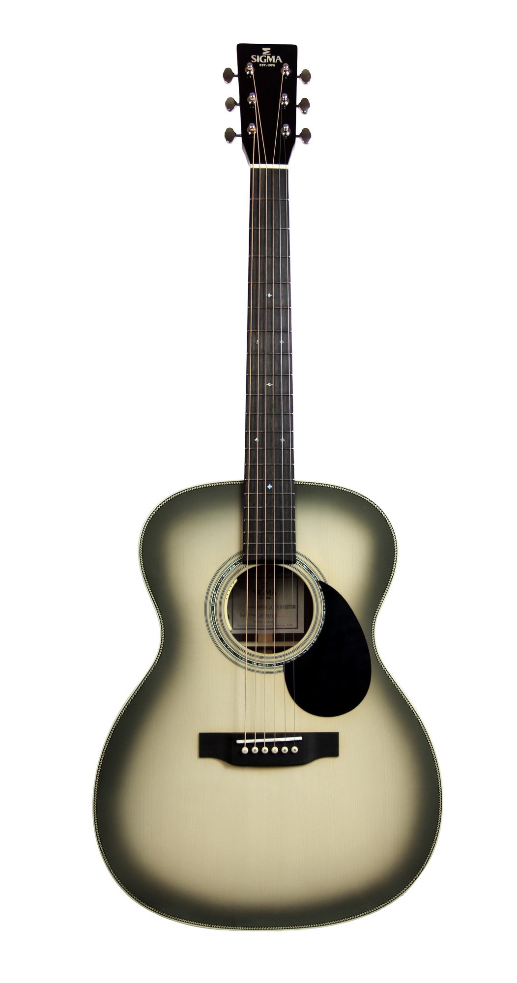 Modèle S000R-28-TSVB, modèle custom, Forme 000, jonction 14ème frette, table épicéa massif, fond & éclisses palissandre indien massif, manche acajou, sillets en os, touche ébène, diapason 24.75″ (628 mm), largeur au sillet 42.9 mm, mécaniques ouvertes Grover nickelées, EQ LR Baggs Anthem, avec étui SC-OM.