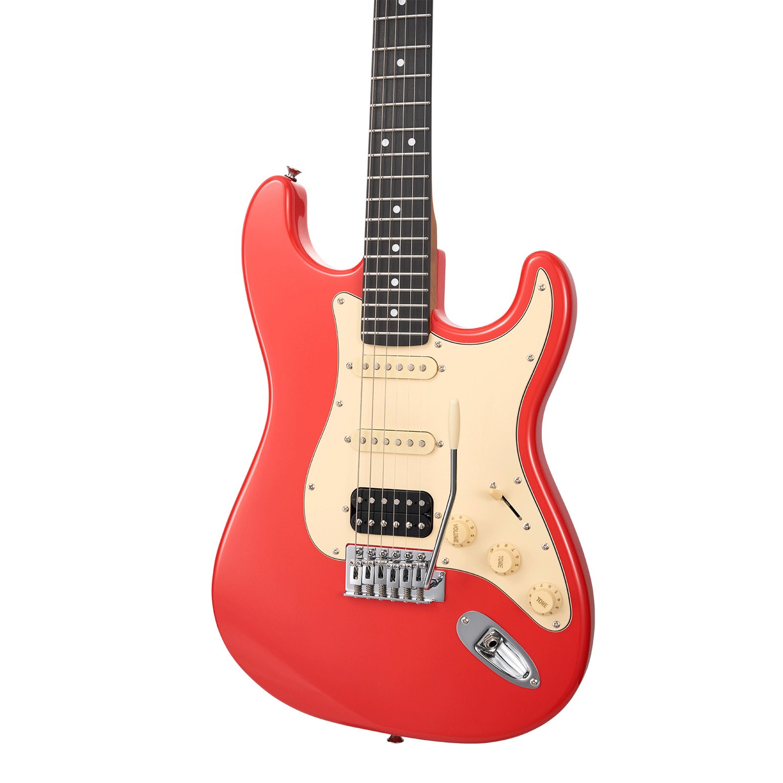 MOOER MSC10 ELITE, corps peuplier, manche érable torréfié satiné, touche ébène tech, rouge, avec housse
